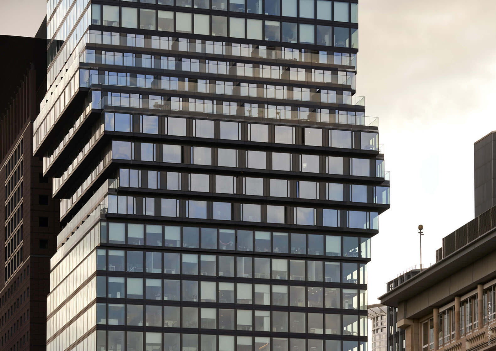 The skyscraper’s building services are fully geared towards sustainability; energy-saving LED lighting is in use, for example, and the lifts are operated using intelligent technology. By virtue of these and other measures, the building has been awarded LEED certification at the highest level (platinum) from the U.S. Green Building Council.