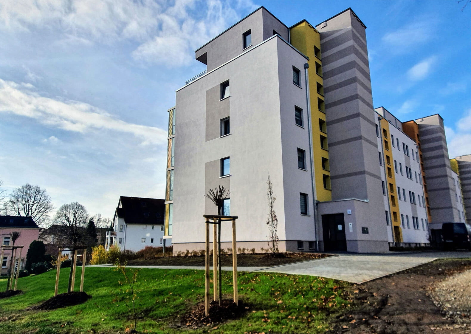 Retrofitting modern comfort in older buildings can pose challenges for planners and installers. This is why the following applies: in order to supplement and improve the technical equipment of existing buildings as part of a complete refurbishment, it is necessary to adapt to the conditions on site. This was also the case in Robinienweg in Zwickau, where the Westsächsische Wohn- und Baugenossenschaft eG (WeWo) planned to renovate one of its properties, a prefabricated building from 1965, and equip the 31 apartments on five floors with underfloor heating. The aim was to make the property fit for the future and enhance its value in the long term. Underfloor heating was also chosen for this reason: thanks to lower flow temperatures and more effective heat distribution, heating energy costs can be saved, ancillary costs reduced and living comfort increased.