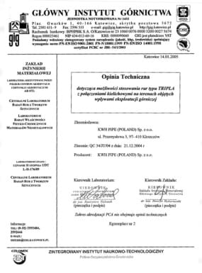 Opinia Głównego Instytutu Górnictwa (GIG) na rury i kształtki WehoTripla PP