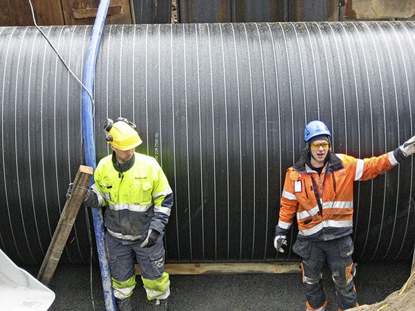 – Saimme kirittyä aikataulun umpeen, kun pääsimme siirtymään pengerosuudelle. Putkielementtien asennus eteni sen jälkeen nopeasti ja kuittasi alun hitauden. Uponor toimitti materiaalia työn edistymisen mukaan. Varastoja ei ollut, joten rekat toivat putket suoraan tehtaalta työmaan reunalle.