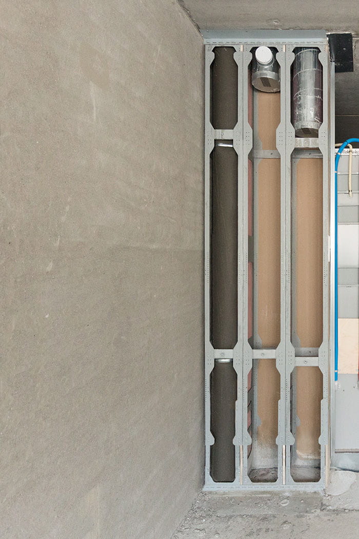 Uponor's R2I block is suitable for new construction needs. The element saves space and costs compared to traditional solutions. One big advantage of R2I block is leakage security, as well as the rapid detectability of any leakage. The sound technology of the R2I block has been given special attention. For the drain, sound absorbing Uponor Decibel drain has been used in the element. The material and multi-layered structure makes the Decibel system silent and especially suitable for acoustically demanding targets.