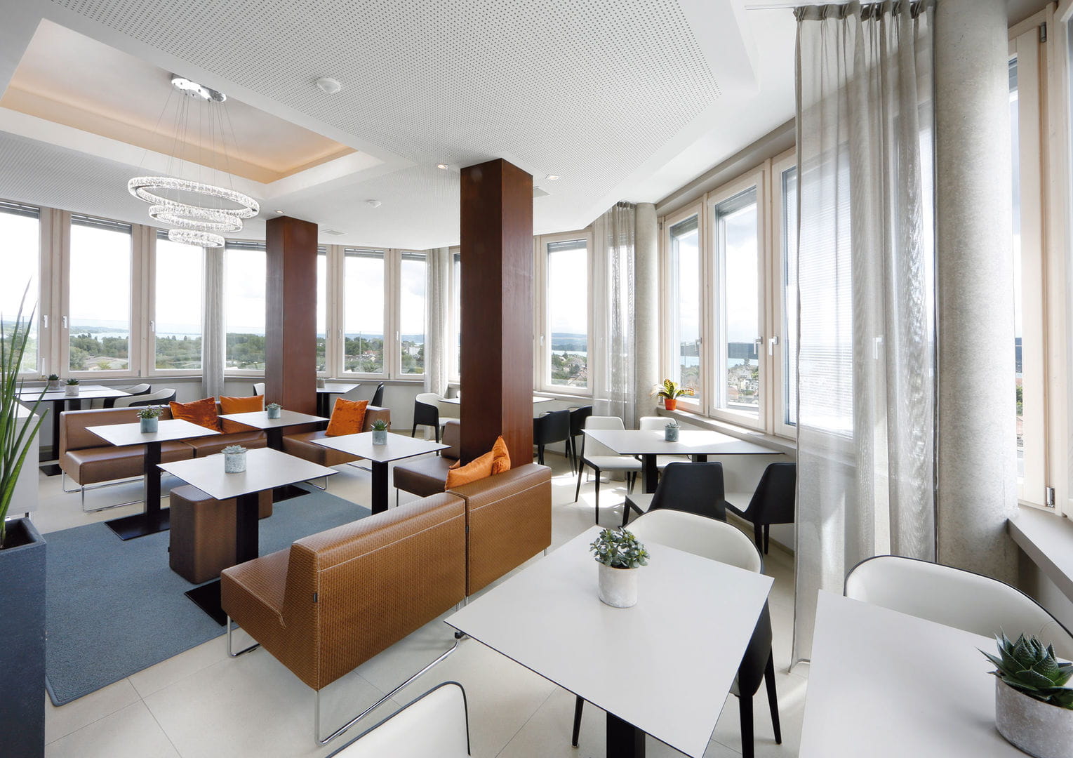 The buildings offer 20 luxurious and comfortably furnished rooms and suites, whose quintuple-glazed windows provide breath-taking views of Lake Constance and the Swiss Alps. The rooms and the fully-glazed breakfast room, which can be found in the 11th floor of the 50m high tower, are equipped with the easy-to-lay Uponor Klett wet installation system for underfloor heating and cooling.