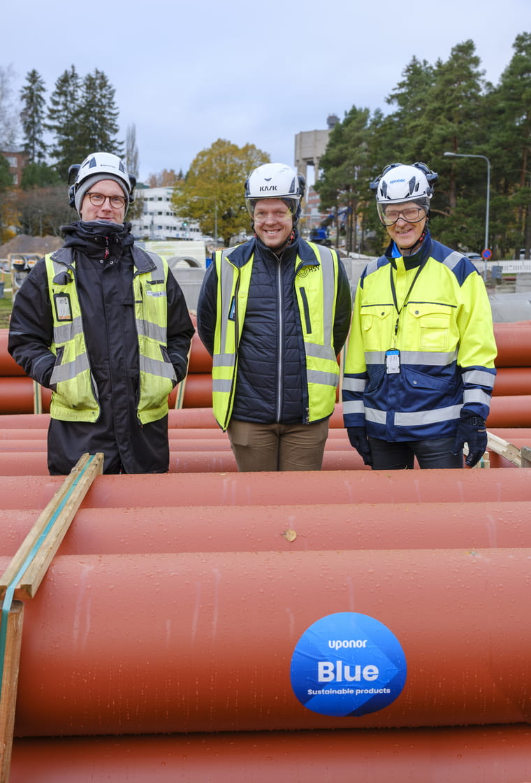HSY (Helsinki Region Environmental Services HSY) is testing a new kind of area renovation operating model in Itäranta, Espoo, where the aim is to get the area's water supply network in order once and for all. New steps are also being taken towards more sustainable construction: the selected Uponor Blue pipes utilising renewable raw materials will reduce the carbon footprint of pipeline installations by 70% compared to traditional plastic pipes.