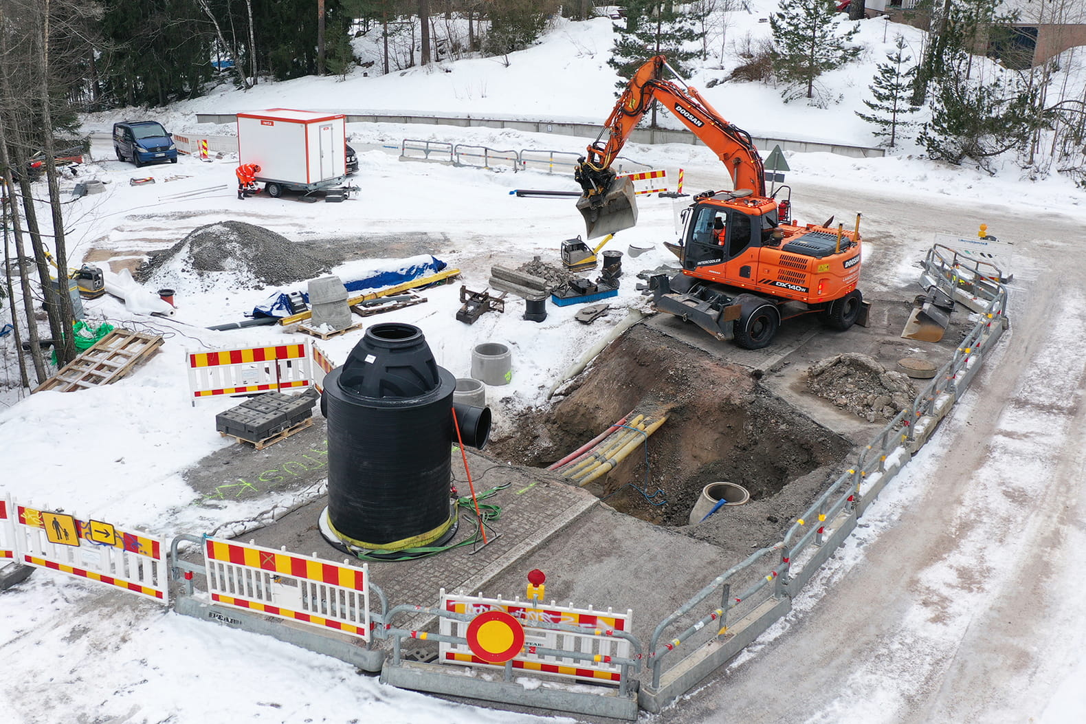In February 2024, a Vortex stormwater separation chamber will be installed at the Ylämaansola construction site in Kauklahti, Espoo. Many new blocks have been built around the construction site. Laura Karhumäki, Project Manager at the City of Espoo, says that stormwater problems have worsened in recent years. Stormwater has flooded the plots several times. The entity now being installed is a continuation of the two underground stormwater retention areas built in the area a little earlier.