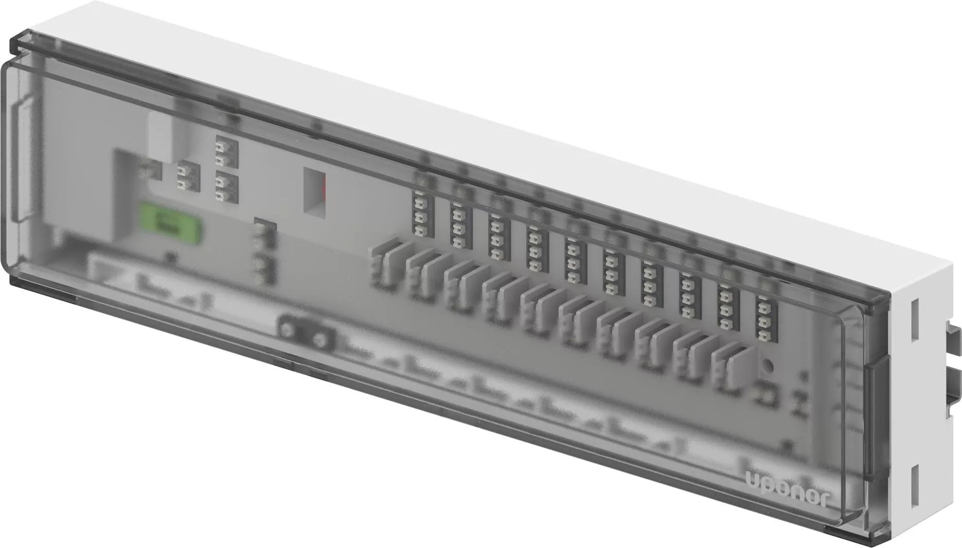 - sterownik z funkcją autobalansowania dla standardowego okablowania 230V- obsługuje do 10 termostatów (230 V)- obsługuje do 12 siłowników (230 V)- bezgłośne przełączanie siłowników- dla instalacji grzania i chłodzenia- autobalansowanie ogrzewania optymalizuje zużycie energii i poprawia komfort- przełącznik do włączania/wyłączania funkcji automatycznego równoważenia- przekaźnik pompy- ograniczenie czasowe obejścia z autobalansem- wejścia: przełacznik grzanie/chłodzenie, czujnik wilgotności, przełącznik dzień/noc- 4 przewody do podłączenia termostatu (opcjonalnie 3)- działa z 3-przewodowym termostatem (2 przewody do zasilania 230 V, 1 wyjście 230 V na żądanie) i 4-przewodowym termostatem dla pełnej funkcjonalności (sygnał dzień/noc)- zaciski przyłączeniowe dla termostatu/siłownika 0,13 ... 1,5 mm²- zabezpieczenie przed przeciążeniem- stopień ochrony: IP20Uwaga: dla instalacji chłodzącej wymagany zestaw kontroli wykroplenia S-80Zestaw zawiera:- Sterownik bazowy Uponor X-80- bez kabla zasilającego - materiał montażowy, szyna DIN w zestawie