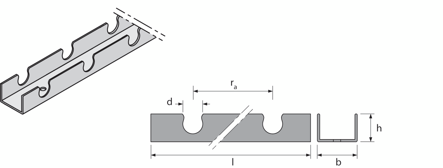 - W skład systemu mocowania rur w ścianach, sufitach i podłogach wchodzą szyny mocujące do przytwierdzania rur
