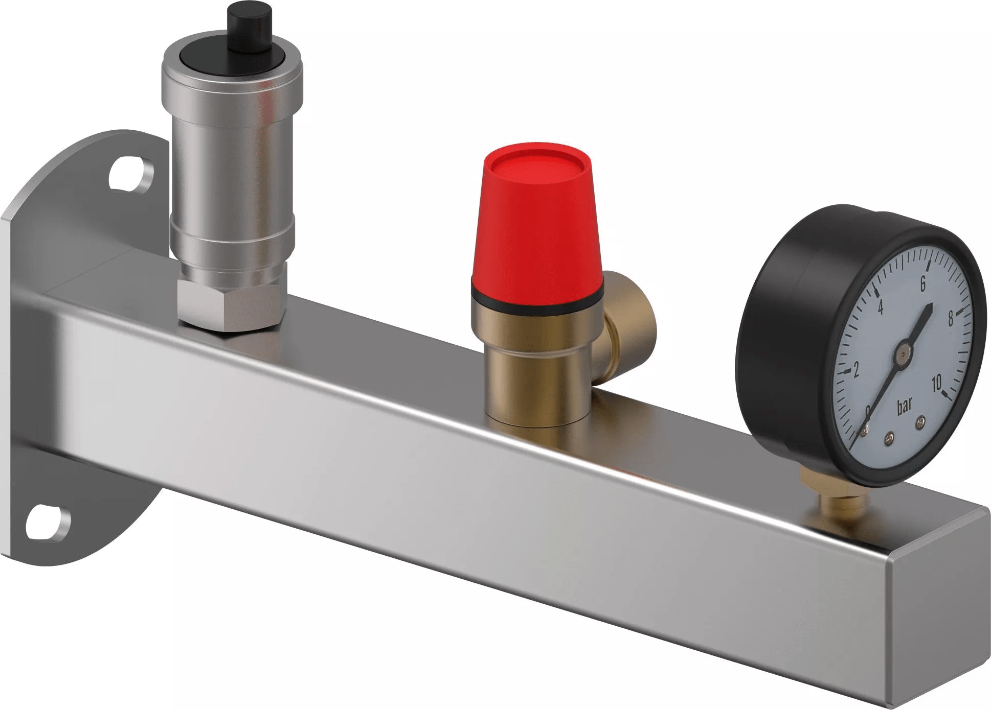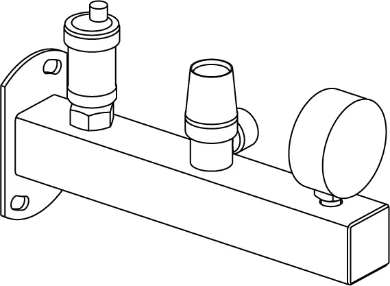 - z manometrem, zaworem bezpieczeństwa i automatycznym odpowietrznikiem