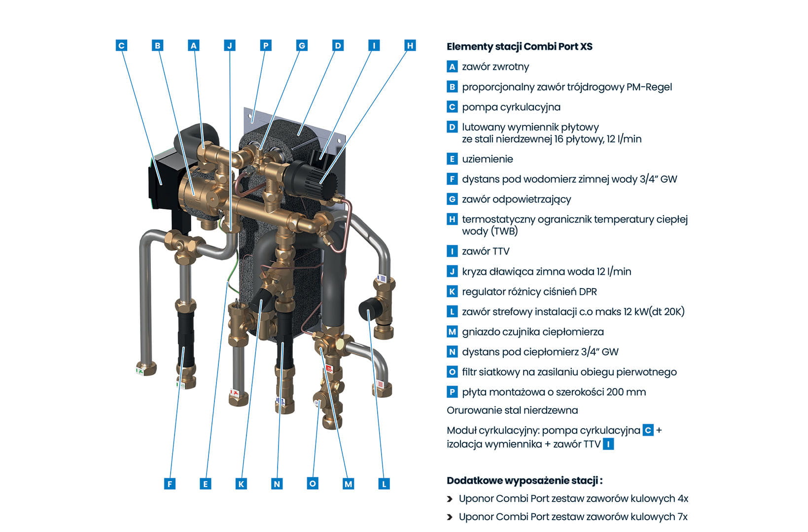 Uponor Combi Port XS [dawniej M90] to kompaktowe rozwiązanie do wytwarzania ciepłej wody i dystrybucji centralanego ogrzewania, zaprojektowane specjalnie z myślą o polskich klientach. Dostępnych jest aż pięć gotowych konfiguracji stacji Combi Port XS, istnieje również możliwość wykonania dodatkowych wariantów stacji na zamówienie. Dowiedz się więcej o Aqua & Combi Port.