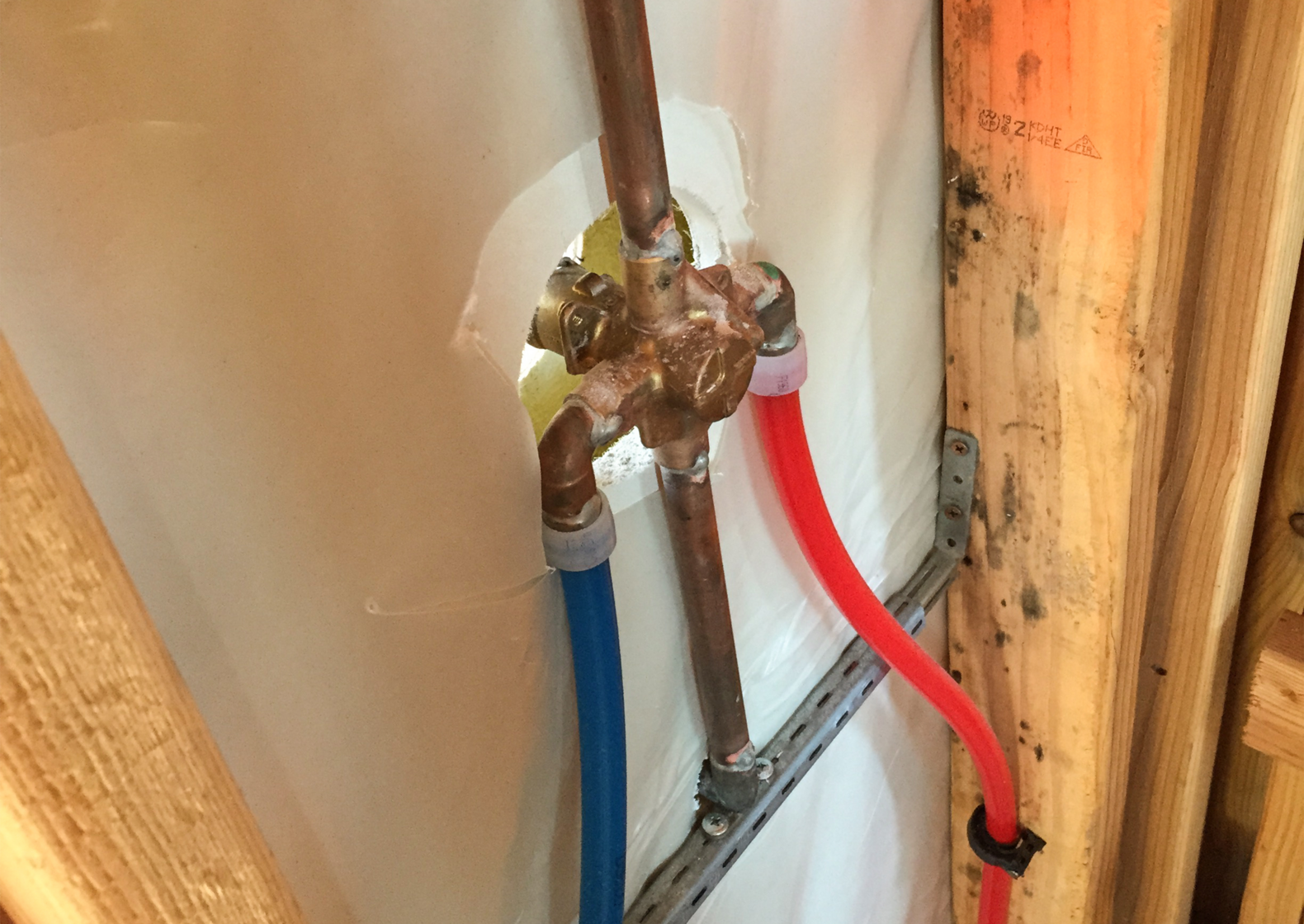 PEX is more forgiving and it’s lighter than copper. We used to use CPVC, stainless and copper pipes, but ProPEX fittings, man, it’s quick and fast.