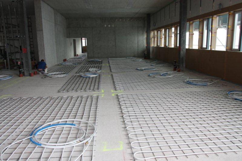 To ensure the comfort of staff and patients at the hospital, a total floor area of 12,352 m2 is thermally activated by means of Uponor's Contec Single thermally active building system. For this, prefabricated Uponor Contec Single registers were installed in the underlay flooring ex works. The MLC Dimension 16 x 2 mm multilayer pipes were supplied on site preinstalled with the backing mats. The pipes can carry either hot or cold water. When used for heating, the water warms the floor, which radiates the stored heat into the rooms. When cooling is required, the water radiates cold to the floor. This enables it to absorb and store the heat generated in the room. Uponor Contec Single heats and cools using mild radiant heat and cold. Because the system works evenly throughout the room, eddying is preventing, avoiding dust clouds. The hospital's entire heating network is supplied through the utilisation of waste heat from an incineration plant.