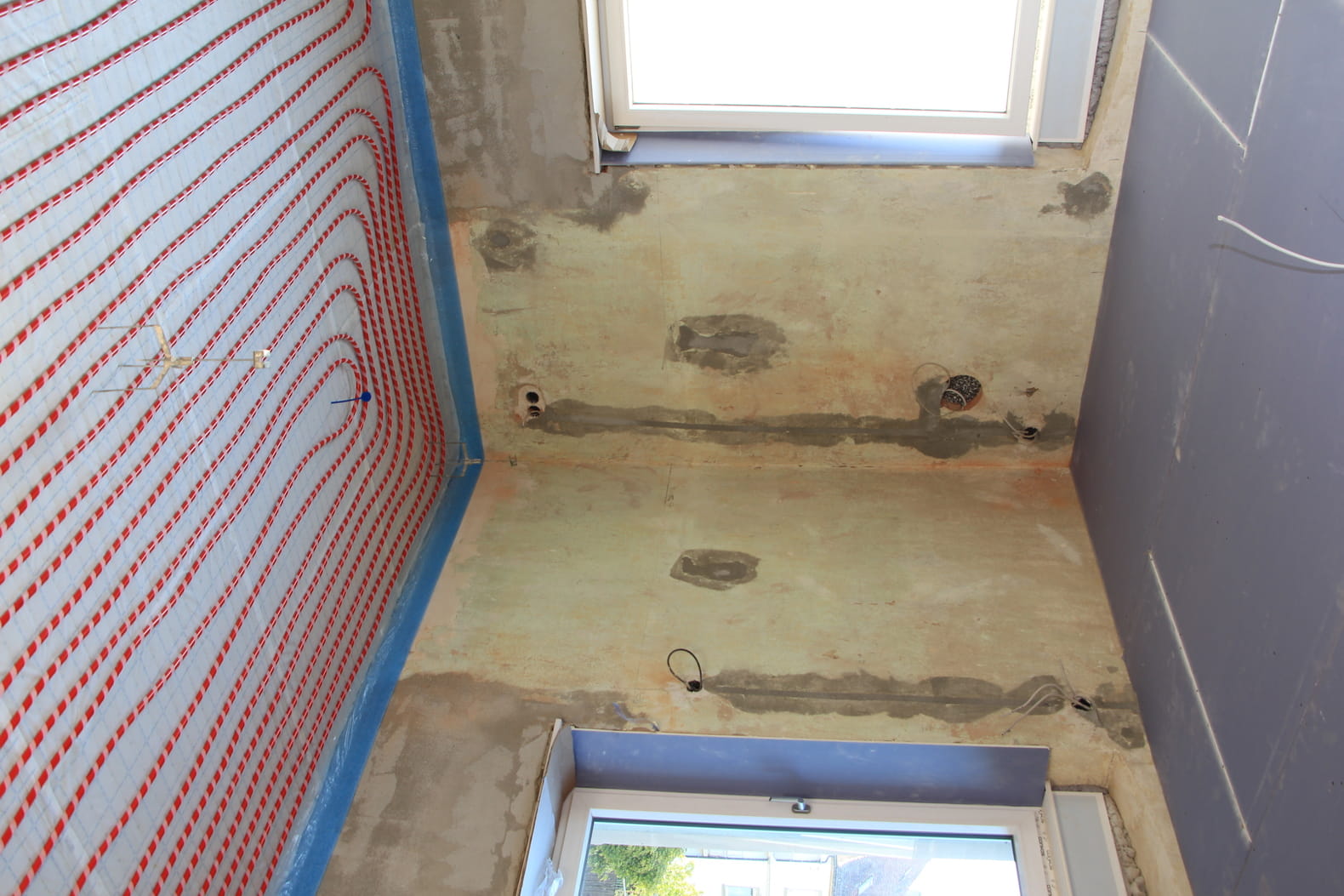 Finally, the self-levelling flowing screed FE Eco was poured into at least 30 mm of heating pipe overlap so that it could optimally enclose the heating pipes. Due to the sloping ceilings, more self-levelling floor screed had to be applied in some places in the apartment in Kitzingen to compensate for this. The result was a perfectly even and horizontal screed surface for the floor covering.