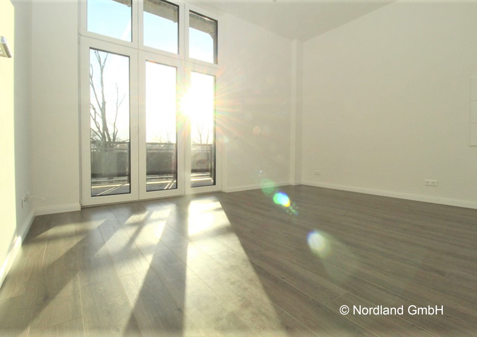 The town of Bernau sits at the confluence where the Panke River flows into the Spree River. The city centre of Berlin is only 30 minutes away by S-Bahn commuter rail. The development site’s buildings, arranged in a quarter-circle arc and originally built during the Second World War, were completely gutted for the project and slip-clad in brick veneer. The PankeBogen, as the investor Nordland GmbH in Hanover has named the new housing estate, with its total area covering roughly 70,000 m², consists of 600 modern apartments ranging from two to five rooms in size that extensively feature floor-length windows and factory-height ceilings. The eight buildings are actually joined by a single shared basement, thereby forming one of the largest contiguous building complexes in eastern Germany.