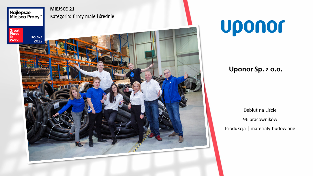 Dziękujemy całemu zespołowi Uponor Sp. z o.o., który każdego dnia wpływa na rozwój, jakość oferowanych rozwiązań oraz wzrost naszej firmy.