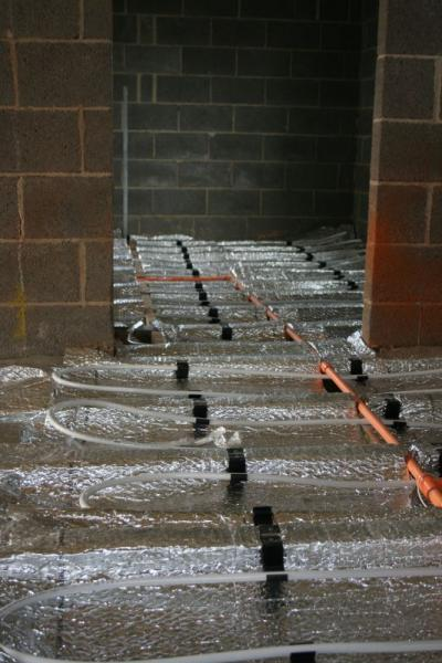 beams and beneath the floor. Manifold plumbing was used throughout the building
