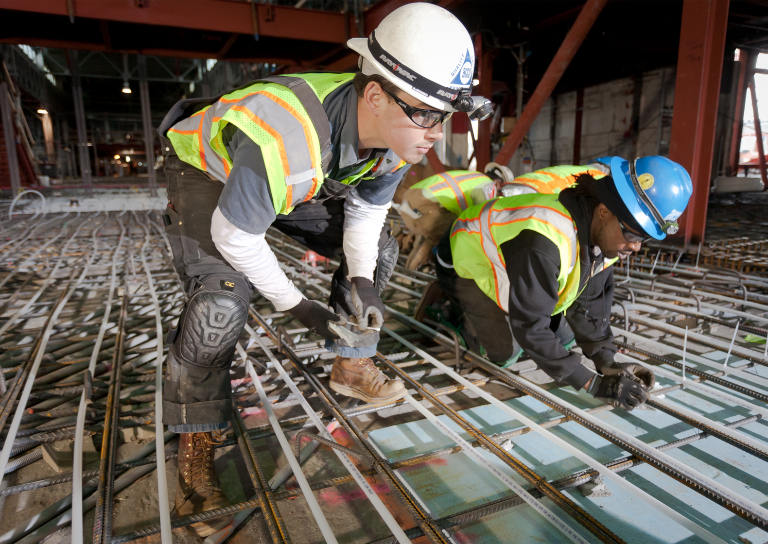 Because of the need for earthquake protection, the specification on the first level of the building was more complex, consisting of two layers of rebar with the PEX loops positioned in between and fastened to the lower stratum. The tubing was specified to sit three to three and a half inches beneath the surface to avoid being punctured by anchors securing the museum’s floor-mounted exhibits. “We couldn’t insulate the first floor in the dowel areas, so we ended up with this checkerboard of two-inch, rigid insulation covering roughly half to 60% of the area. This checkerboard wasn’t particularly easy for the installers to walk on — let alone work on — and that added to the installation time,” Wenisch said. But the use of Uponor’s Radiant Rollout Mats on approximately 80 percent of the floor surface helped make up for these construction obstacles.