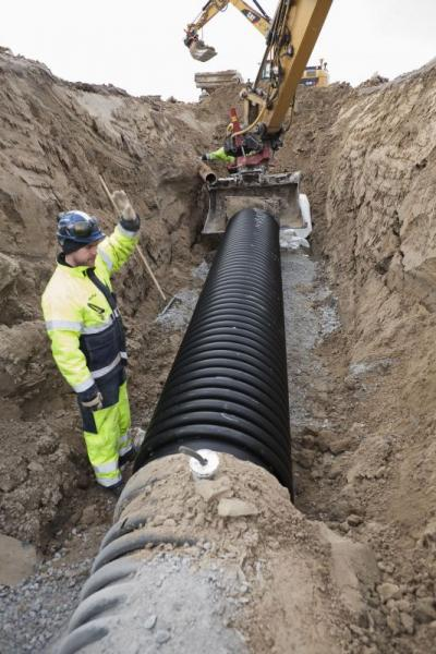 Uponor soil drainage system big profile pipes in Skavsta Airport, Nyköping,