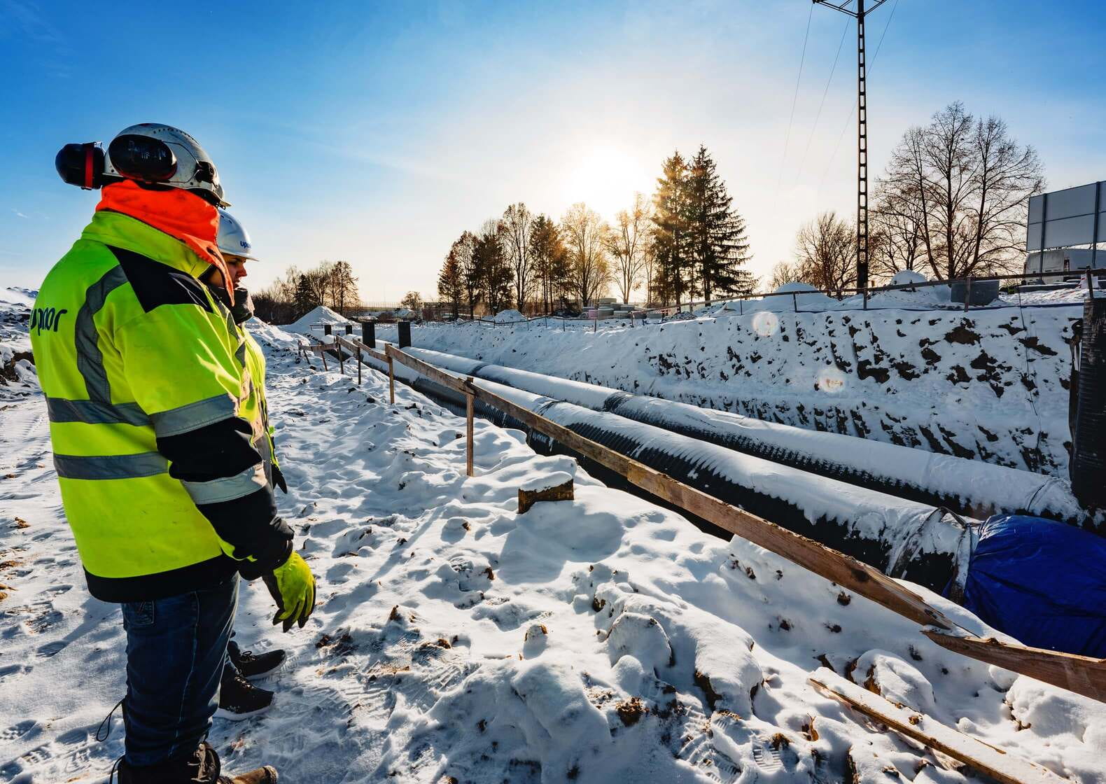 Baterię dwóch polietylenowych zbiorników DN2000 o długości 98 m każdy i łącznej pojemności wynoszącej 615 m3 zabudowano pod przyszłymi parkingami, równolegle do siebie i jednocześnie wzdłuż torów kolejowych. Na plac budowy dostarczono je w postaci pojedynczych elementów, natomiast Grupa Serwisowa Uponor Infra już na miejscu połączyła je w jeden układ, za pomocą spawania ekstruzyjnego. Warto podkreślić, że choć prace były prowadzone w zimowych warunkach, w temperaturze nawet -20°C i przy opadach śniegu, to łączenie poszczególnych elementów przebiegło zgodnie z planem a niesprzyjające okoliczności nie spowodowały przerwania prac. Na koniec robót montażowych dostawca przeprowadził uproszczoną próbę szczelności zbiorników powietrzem w profil.