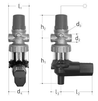 Temperatura: máx. 30 °CMaterial: bronze, aço inoxidável, EPDM, plásticoDefinição de fábrica: 400 kPa (4 bar)Pressão secundária: 200–600 kPa (2–6 bar)Ligação: rosca machoComposto por: válvula redutora de pressão combinada, unidade automática de contracorrente, filtro de partículas finas de contrafluxo