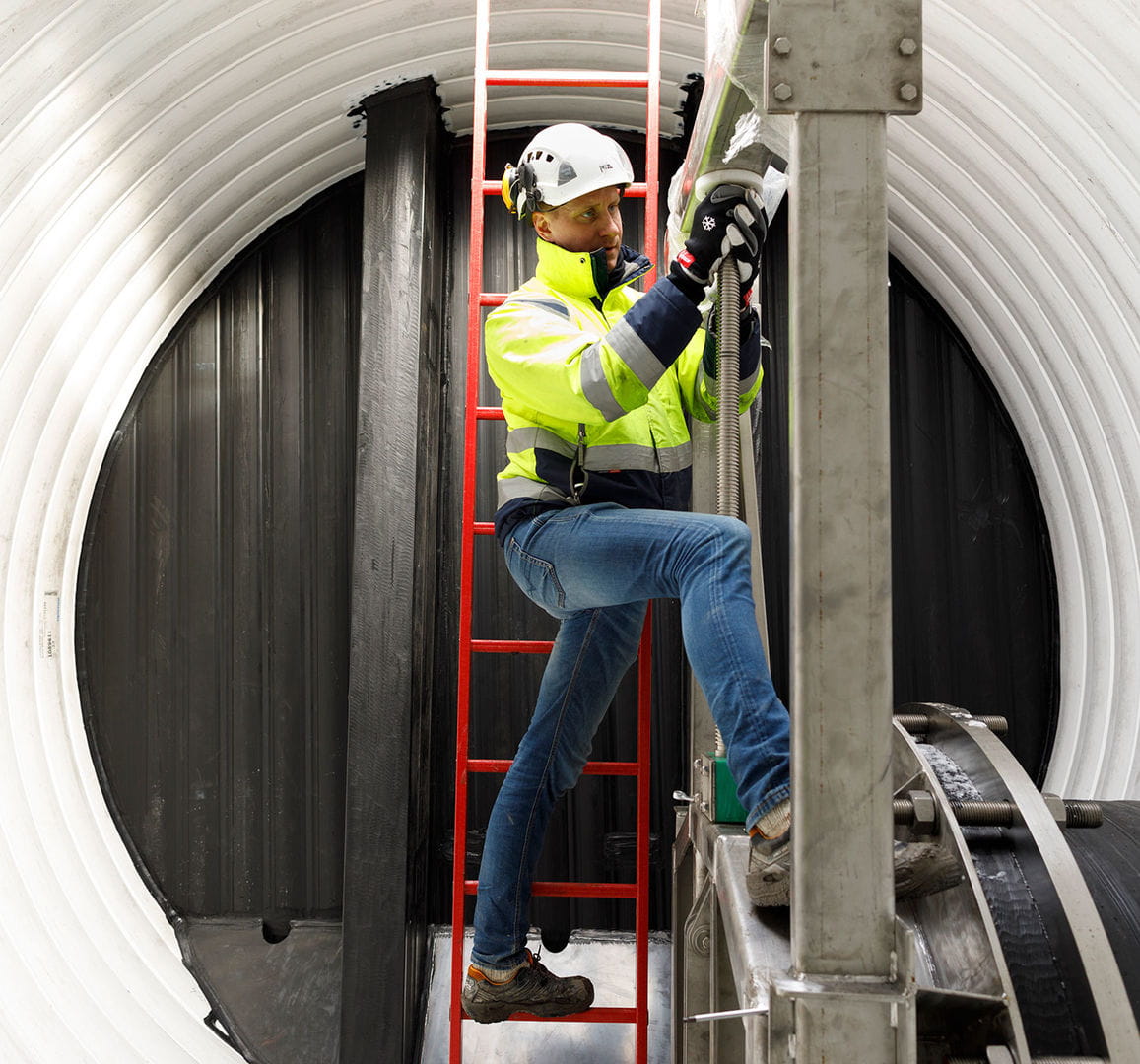 Initially, there was no guarantee that Öresundskraft would choose Uponor Infra and Weholite. The initial plan involved creating an in-situ cast concrete structure. However, the choice became easy when Öresundskraft considered the advantages of Weholite: the huge savings to be made and no risk from concrete disintegrating through exposure to seawater. The pump station is the largest prefabricated structure in Sweden, at 23 metres long and with dimensions of ID/OD3,500/3,900mm. Weholite enabled the pump station to be prefabricated at Uponor Infra’s factory in Fristad, transported to Helsingborg, and lowered into place in a water-filled sheet-piled cofferdam. This method hugely rationalised the work and would not have been possible on the basis of concrete construction.