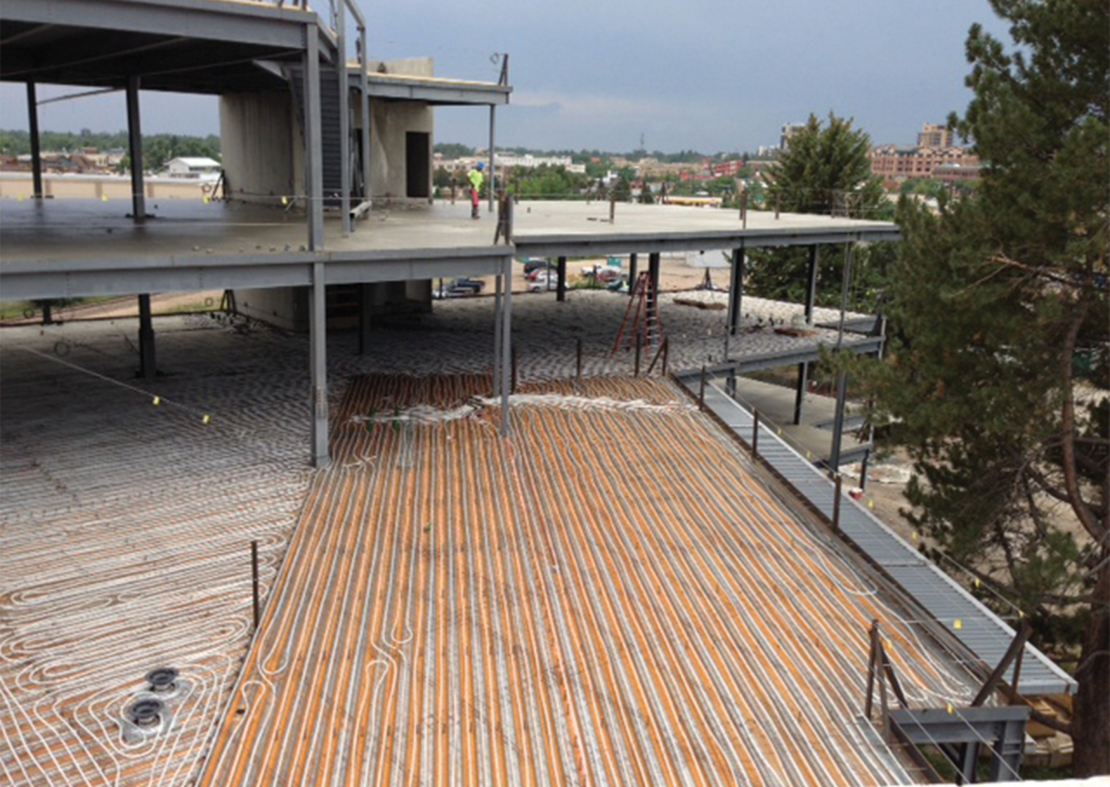The building, named the Power House for its focus on energy research, was a unique opportunity for Lind’s to showcase the advantages of PEX in several different applications. To add to the complexity, the radiant heating and cooling component was to function without a chiller. “Colorado, with its dry air, gives us a perfect opportunity to install a cooling tower instead of a chiller. It is typical for a cooling tower to be on a site to cool down a chiller, but in this case there is no chiller,” Makepeace explained.