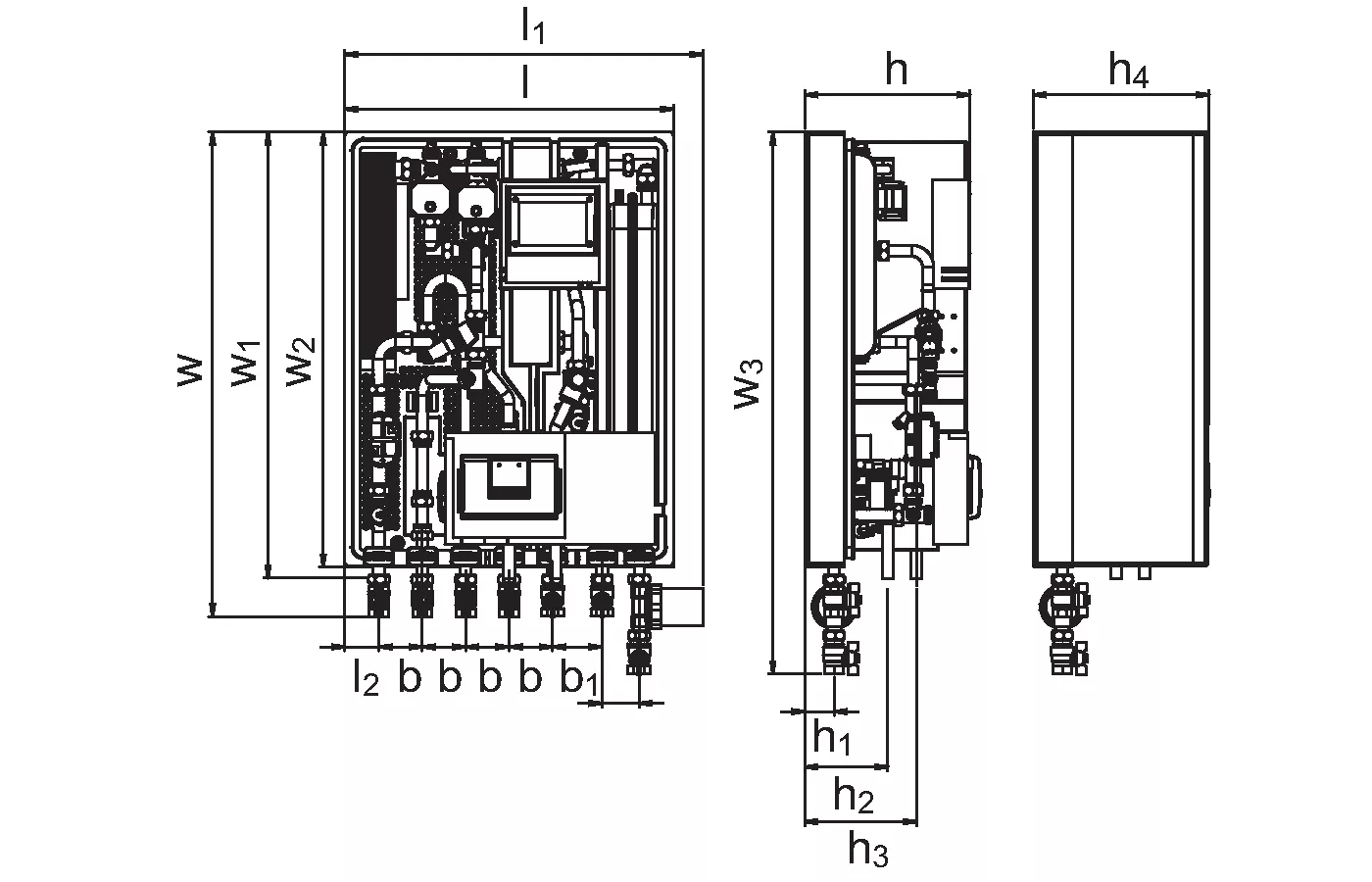 - control electronic al debitului de încălzire și returului pentru economie energiei și confort sporit prin control adaptiv- separare termică a părții de încălzire și de instalații sanitare, pentru igienă îmbunătățită prin evitarea încălzirii apei reci- recunoașterea profilului de încărcare al apei calde menajere pentru creșterea confortului prin timpi de ejecție mai scurți- mod ECO pentru a permite economisirea energiei de încălzire, estimată a fi de până la 50 W/zi- echilibrare hidraulică electronică pentru funcționare fără probleme, datorită controlului precis al debitului- punere în funcțiune și depanare ușoară prin aplicație- interfață de conectare a sistemului de administrare a clădirii pentru o mai bună gestionare a instalațiilor- port complet asamblat și testat la presiune- coliere de țevi fabricate din plastic, pentru protecție solidă și decuplare termică- schimbător de căldură sudat sau sudat prin difuzie (VA) cu cupru- distanțier pentru contor termic de 110 mm x 3/4"- distanțier pentru contor de apă de 110 mm x 3/4"- robinet de umplere și golire- sită pentru apă rece- sită pentru conductă de alimentare pentru încălzire primară de 0,5 mm- Posibilitate de conectare (marcată) a unei urechi de împământare electrică- presiune max. de funcționare încălzire: PN10- presiune max. de funcționare instalație sanitară: PN10- temperatură max. de funcționare: 85 °C- presiune diferențială max. încălzire: 1,2 bari- presiune min. instalație sanitară: 2 bari- material fitinguri instalație sanitară: CW617N- material fitinguri încălzire: CW617N, CW614N- material țeavă: oțel inoxidabil 1.4401- material consolă capac: EPP- dimensiuni: l/H/A 560 x 630 x 140 mm- consum de curent electric: max. 3 W