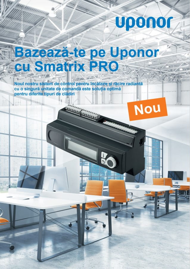 În plus, monitorizarea colectivă este o necesitate pentru clădirile comerciale moderne, de exemplu alarmele, ventilația, temperatura interioară, senzorii de securitate și celelalte elemente trebuie să facă parte din aceeași rețea unică. Un centru comun de informații colectează datele de la toate dispozitivele, verifică funcționarea acestora și le reglează setările, pentru a îmbunătăți eficiența energetică și siguranța. Ușor de instalat, configurat și utilizat, Smatrix PRO oferă soluții ultramoderne de monitorizare, cu un algoritm de autoînvățare și reglează temperaturile prin intermediul unei funcții de autoechilibrare, atunci când condițiile se modifică. Faceți clic pe următorul link pentru a afla mai multe despre Uponor Smatrix, termostatul inteligent cu control de la distanță.