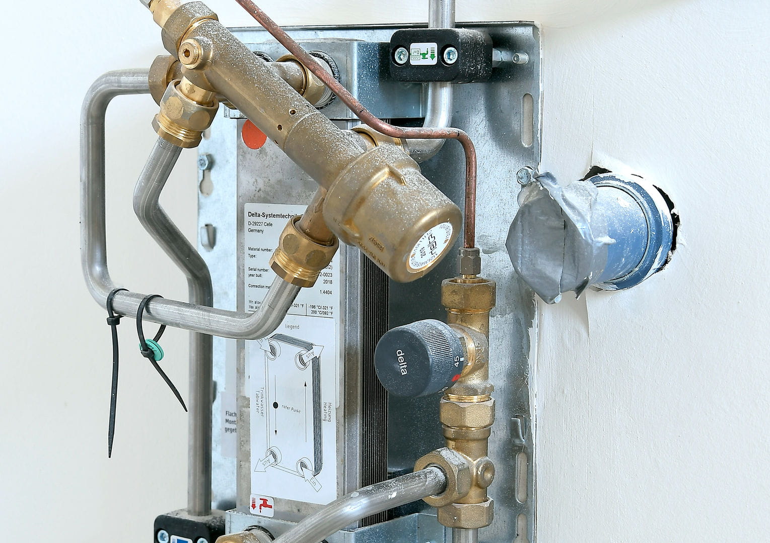 The decentralised heat distribution in each flat is handled by a flat combination station with a 3-pipe module. The advantage is that the drinking water is heated promptly and according to demand. The temperatures - and thus also the operating costs - are lower than with central systems. Because there are less than three litres of water in the hot water pipes, there is no obligation to test for legionella. More distant taps in seven flats are each supplied by an Aqua Port Compact Base drinking water station.
