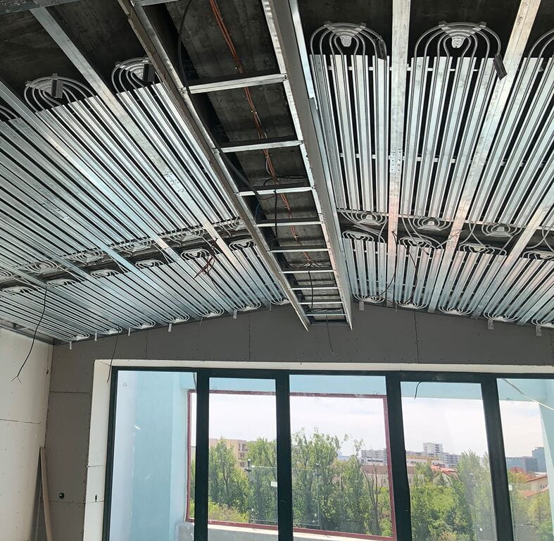 „În majoritatea clădirilor, tavanul este suprafața pe care sunt făcute cele mai puține intervenții. Podelele, în schimb, sunt adesea acoperite de multe obiecte (mobilier, covoare, echipamente). În ceea ce privește performanța, tavanul este de preferat; devine o suprafață mare de transfer termic, conferindu-i un rol mai activ.”