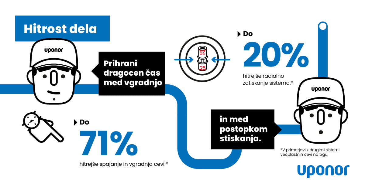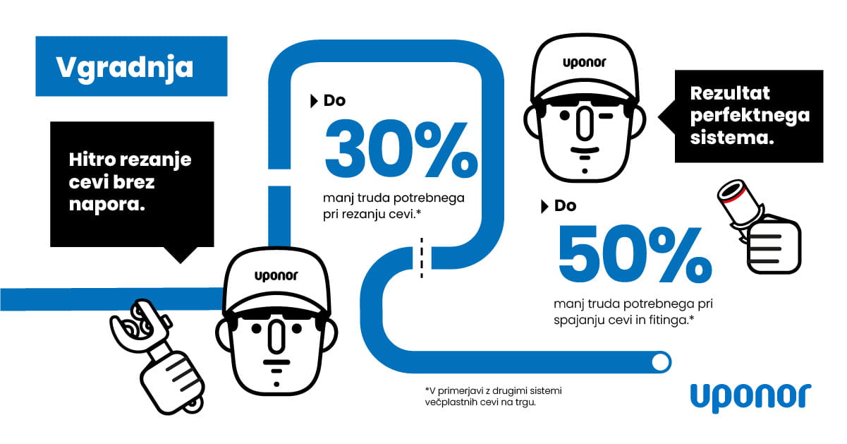 Ta večplastna cev za pitno vodo (Uponor MLCP) skupaj z S-Press PLUS zatisnimi fitingi podpira vaš gradbeni projekt s hitro in učinkovito vgradnjo.