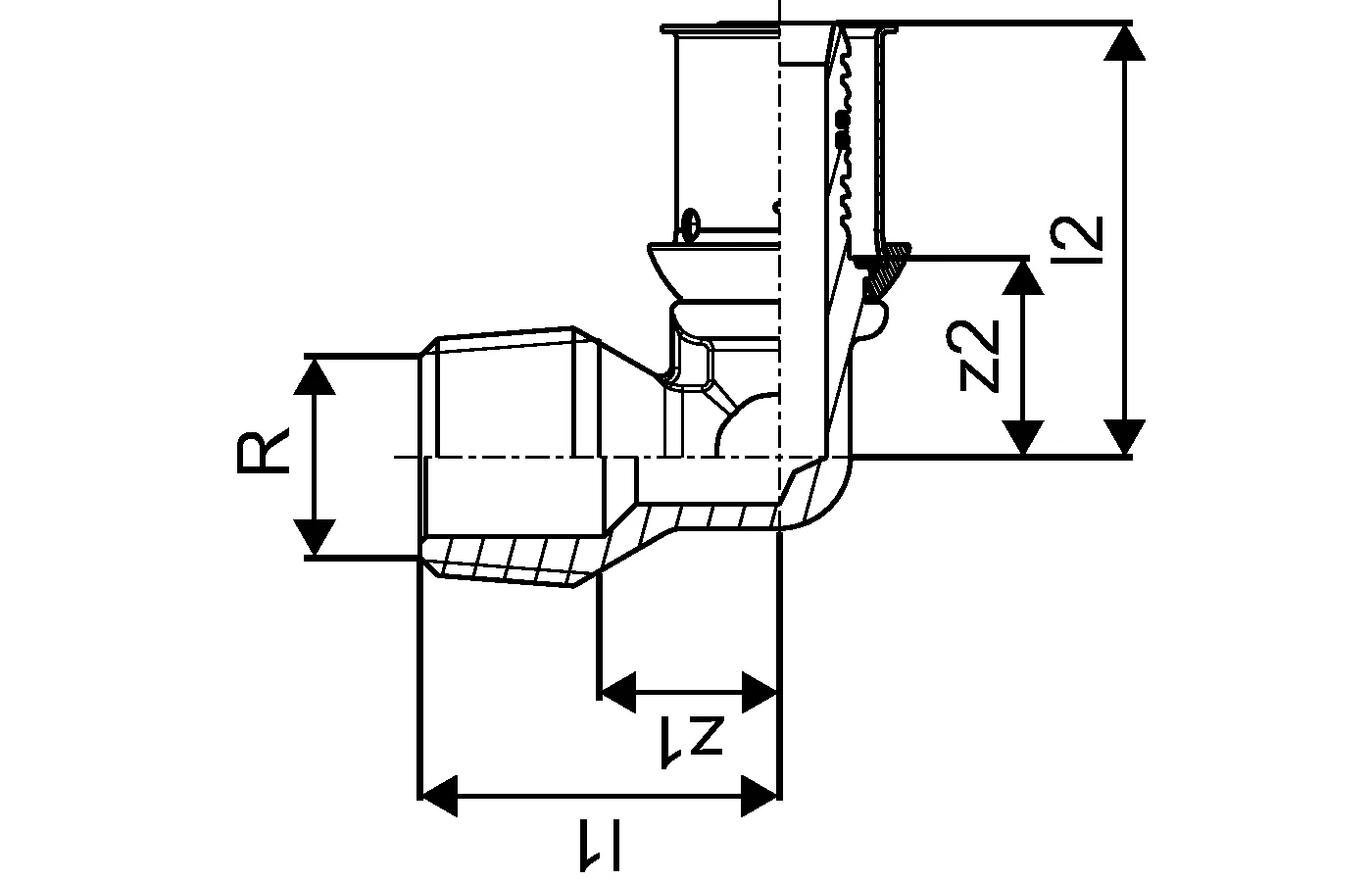 Uponor S-Press PLUS koleno zunanji navoj 32-R1"MT
