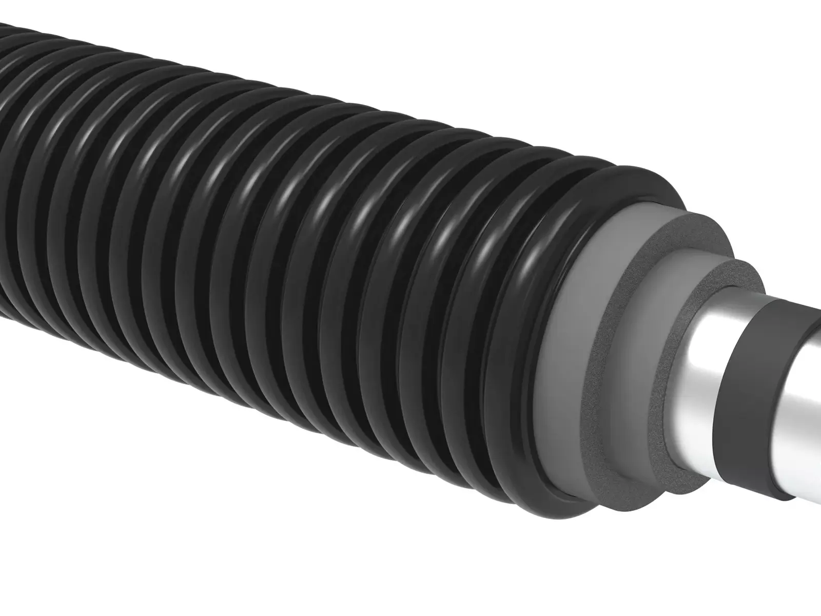 - fleksibilen, predizoliran, samo-kompenzacijski plastični cevni sistem, ki je izdelan v skladu s standardom EN 15632- notranja cev: zamrežen polietilen (PE-Xa) v skladu s standardom EN 15875, barva naravna, PN 6 (SDR 11) ali PN 10 (SDR 7,4), difuzijska zaščita v skladu s standardom EN 15632- izolacijski material: revolucionaren izolacijski material z ekstremno nizko lambda vrednostjo v kombinaciji s trajno elastično zaprto celično PE-X peno- zunanji zaščitni plašč: rebrasta cev iz polietilena (HDPE)