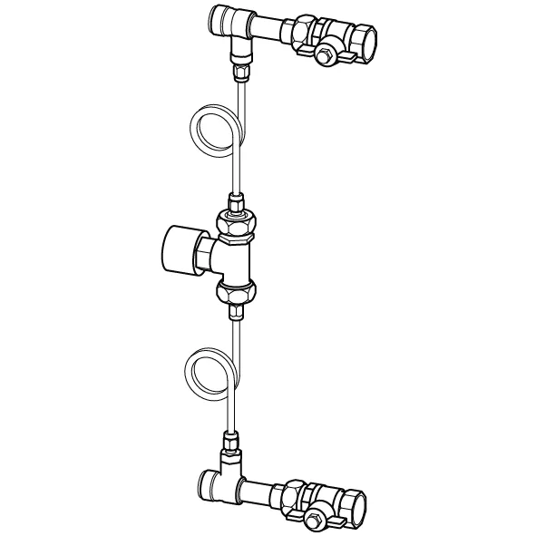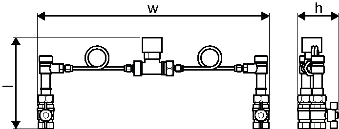 - bypass dovodnega ogrevalnega krogotoka s priključki za vgradnjo na dvižne cevi, ki se uporablja kot dopolnilni pripomoček za toplotno podpostajo brez funkcije bypassa za ohranjanje vročega/toplega dovodnega krogotoka- dimenzijske oznake:-- 3/4" - navedba velikosti priključne cevi