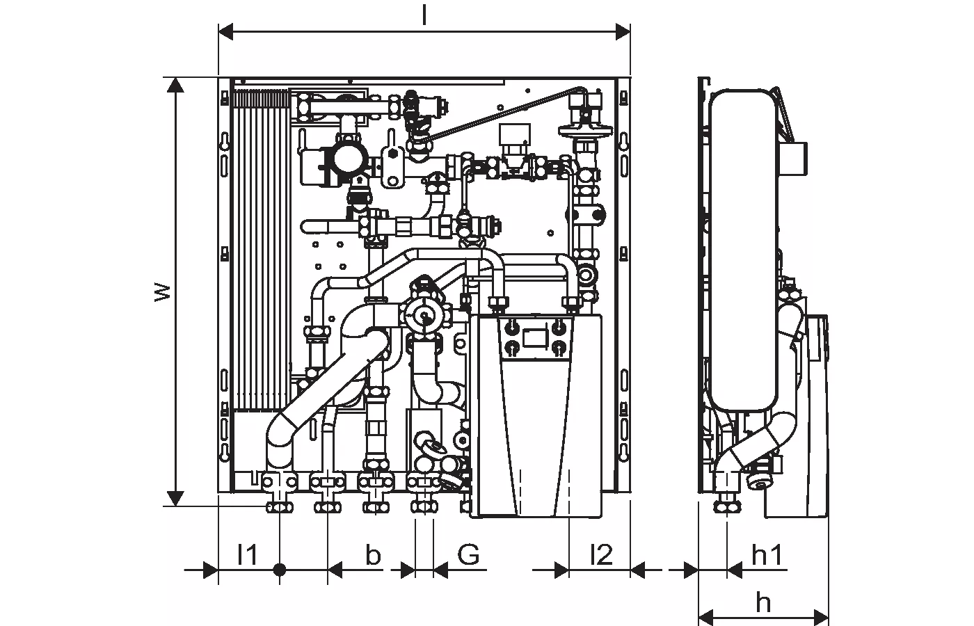 - priključek v celoti sestavljen in preizkušen pod tlakom- cevne objemke iz plastike za zvočno zaščito in toplotno ločevanje- DVGW-certificiran PM-ventil s patentirano tehnologijo trojnega tesnjenja- toplotna izolacija na dovodnih ceveh- termostatski obvodni ventil- vključen električni grelec za toplo sanitarno vodo- distančnik za merilnik toplotne energije 110 mm x 3/4 palca- distančnik za merilnik vode 110 mm x 3/4 palca- odzračevalni in drenažni ventili- mrežasti filter za hladno vodo 0,5 mm- mrežasti filter za dovod primarnega ogrevanja 0,5 mm- možnost priključitve (označeno) električne ozemljitvene sponke- najv. delovni tlak ogrevanja: PN10- najv. delovni tlak ogrevanja sanitarne vode: PN10- najv. delovna temperatura primarnega krogotoka 85 °C- najv. delovna temperatura krogotoka sanitarne tople vode: 60 °C- najv. Diferenčni tlak primarnega ogrevanja: 2,5 bara- najm. sanitarni ogrevanja sanitarne vode: 2,0 bara- namestitveni material ogrevanja sanitarne vode: CW617N- namestitveni material za ogrevanje: CW617N, CW614N- material cevi: nerjavno jeklo 1.4401- mere: Š/V/G 555,5 × 618 × 174 mm