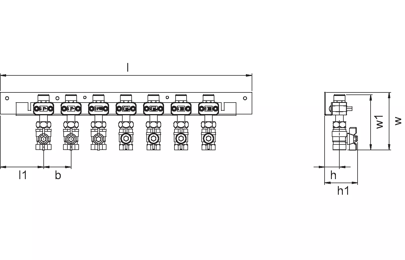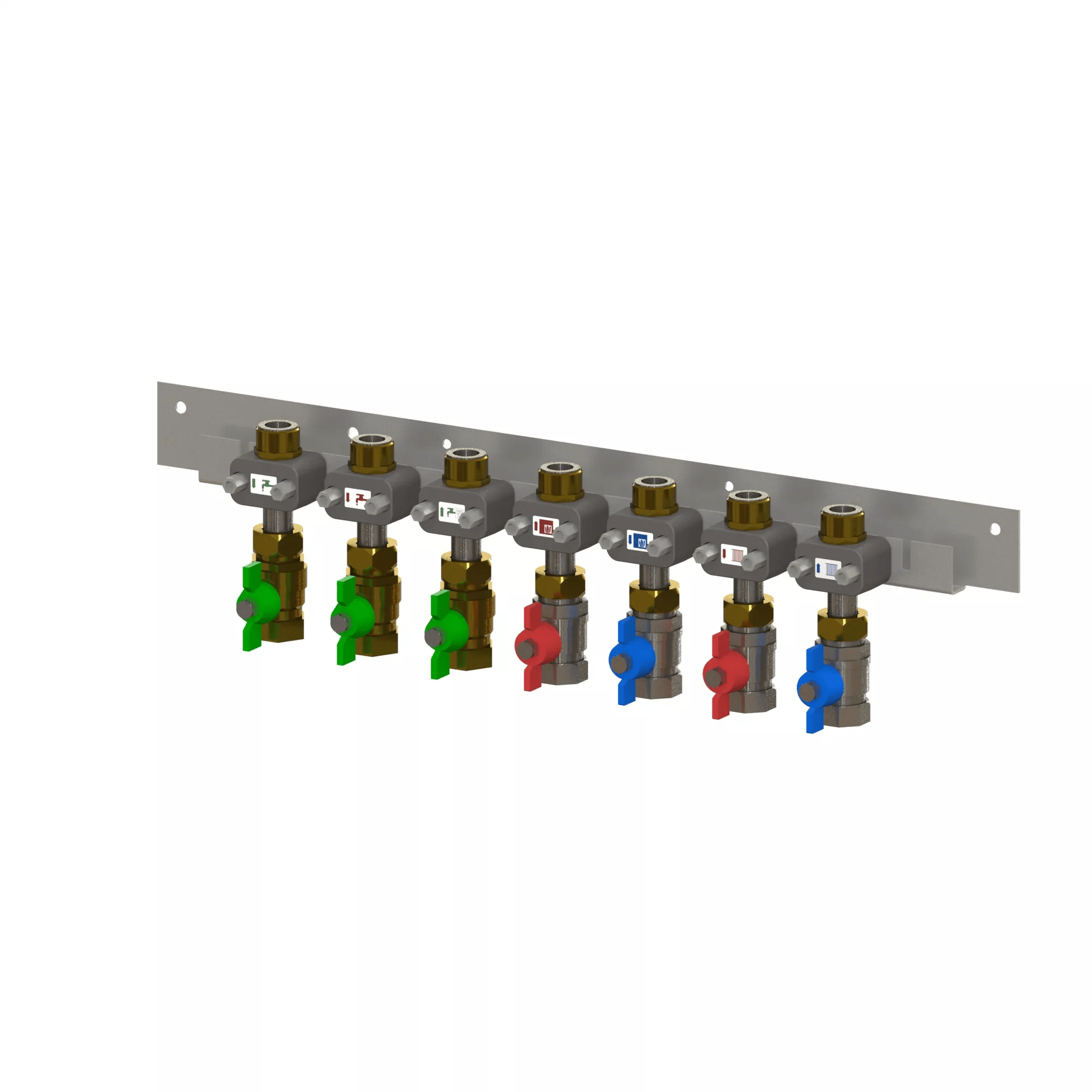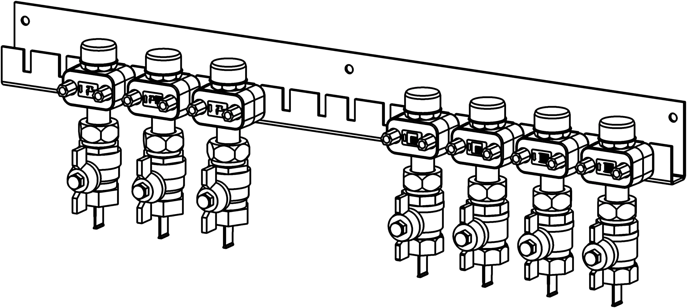 - montažna letev, skupaj s kompletom vnaprej nameščenih krogelnih ventilov- dimenzijske oznake:-- x7/x9 - število krogelnih ventilov v kompletu (7 ali 9 kosov)-- DN20 - velikost/dimenzija krogelnega ventila-- MT - priključek z zunanjim navojem-- FT - priključek z notranjim navojem