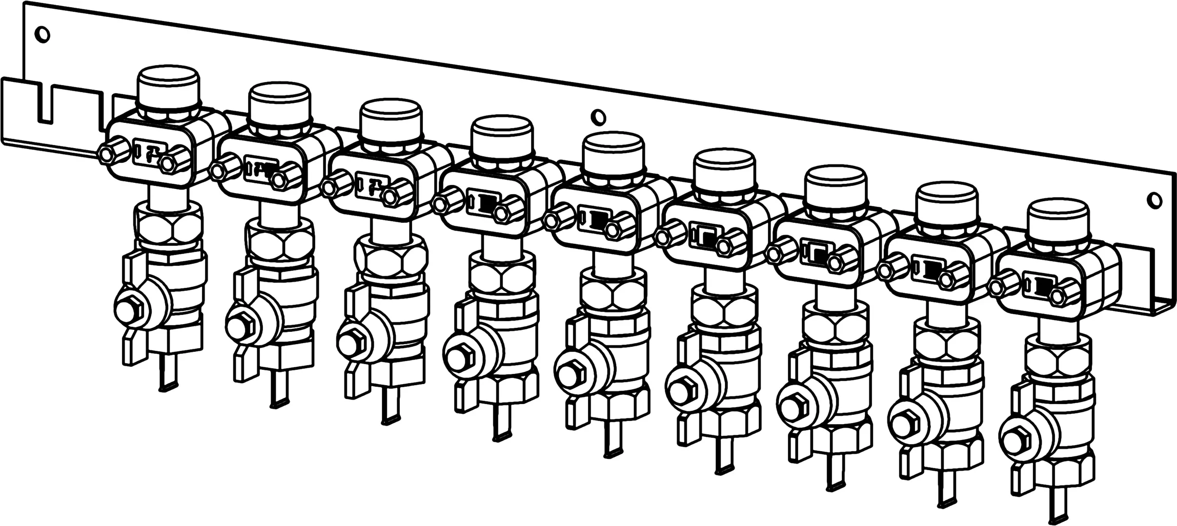 Uponor Combi Port M-Pro krogelni ventili na letvi Bottom