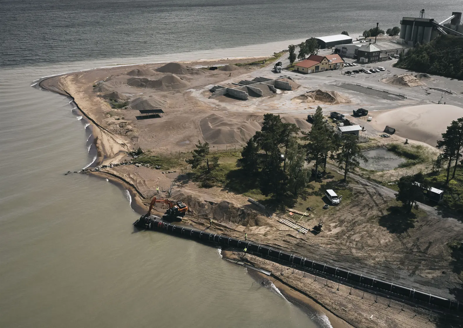 - To be able to lower them, we put air bags on the pipes and filled them with water. By regulating the air in the bags, we were able to lower the pipes calmly and carefully. Divers made sure to steer the pipes into place. Then the divers bolted together the flange connections between the four 100-meter pipes with bolt straps. The deepest installation is at a depth of six meters, 400 meters right out into Lake Vättern, far from swimming and other activities, says Petri Tähtinen.