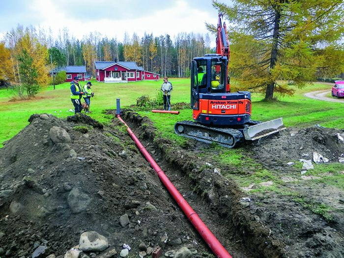 Then in 2013, Savola made a decision on radon remediation, as the concentration in the ground floor rose alarmingly to over 2,000 Bq / m³. The readings were the highest in Ilomantsi if you compare them with other measurement results made during STUK's campaign. As a result, Savola participated in radon training organized by STUK and requested an offer from Uponor to carry out radon renovation. The contract was carried out by WP-Pipe, a HVAC company in Joensuu, which installed Uponor's radon system next to the slope-side wall. The system included plastic suction and transfer ducts, an exhaust fan installed in the fan well and a ventilation pile.