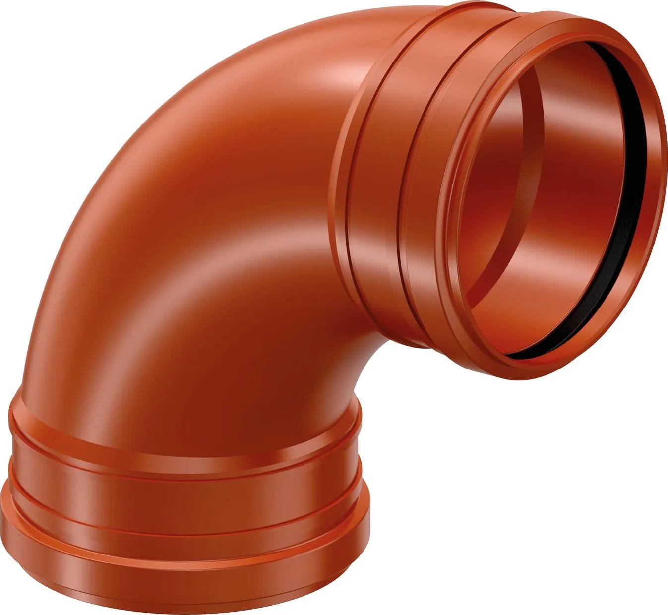 Med två muffar, svängt utförande och oljebeständig tätningsring.