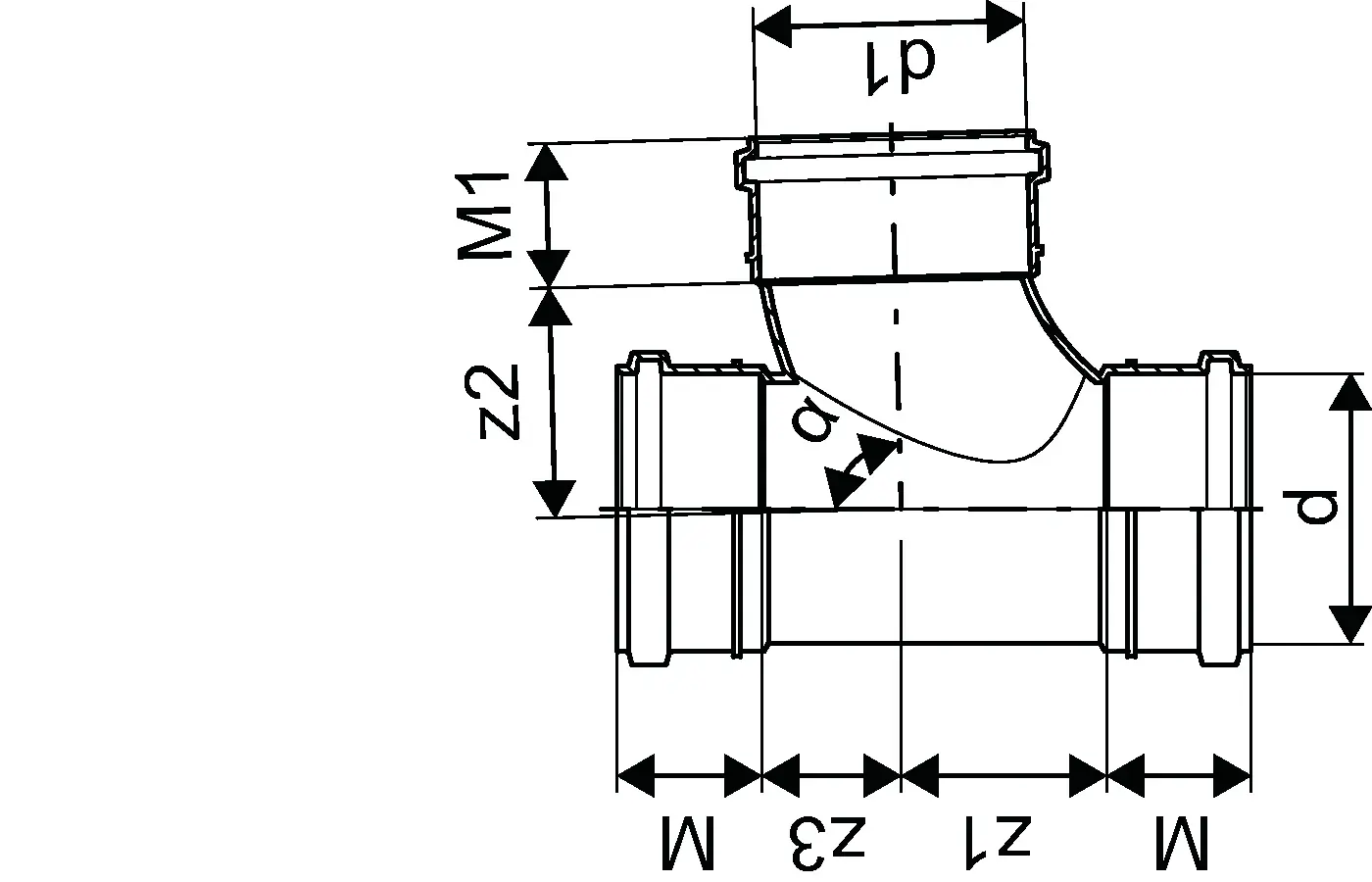 Med tre muffar, svängt utförande och oljebeständig tätningsring.