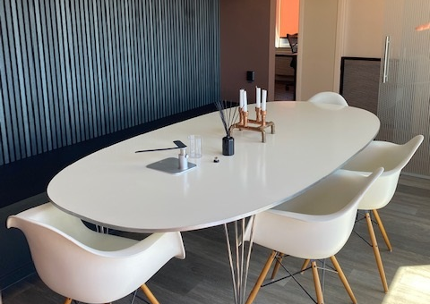 – Genom att anlita en inredningsarkitekt med fokus på standardmaterial, där färg och form skapar en trivsam miljö inom budgeten, har vi kunnat hålla nere kostnaderna utan att tumma på kvalitén, säger Veronica Lange, ägare och administratör på Mälardalens Rör.