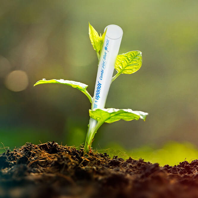 Genom att tillverka rören i förnybart råmaterial minskas koldioxidutsläppen med upp till 90% jämfört med vanliga PEX-rör.
