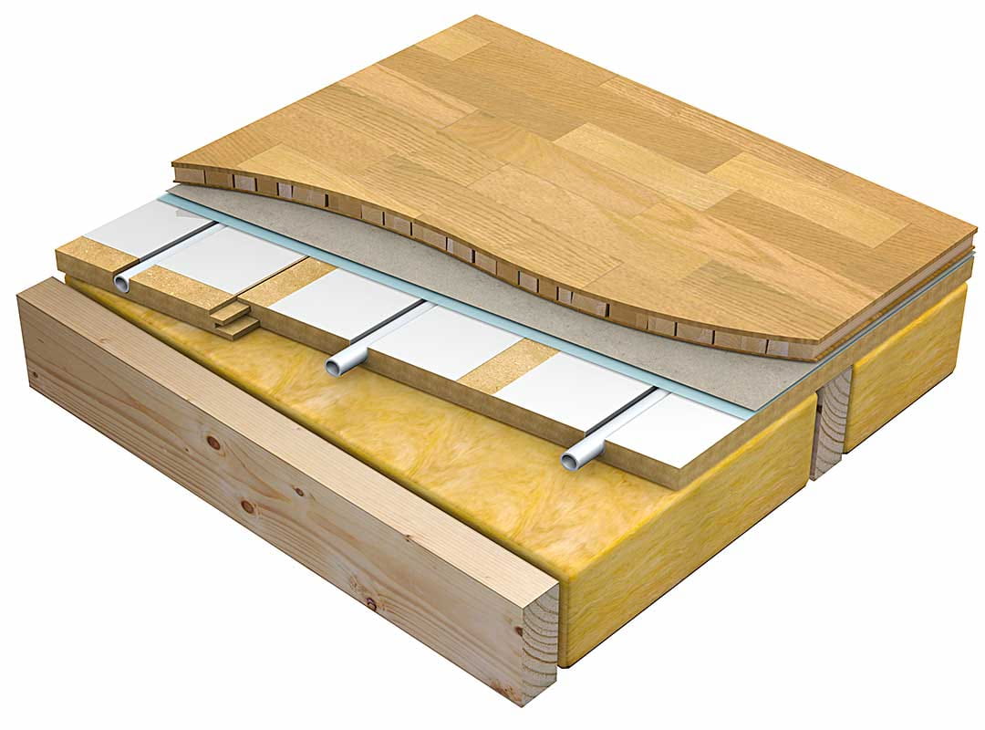 Golvvärme eller golvkyla i träbjälklag eller installationsgolv