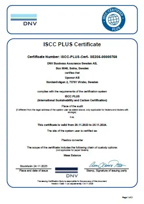 * med ISCC-certifiering, baserat på massbalansprincipen