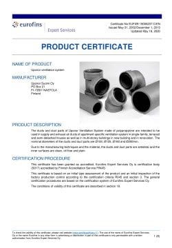 Produktcertifikat EUFI29-19006237-C-EN 240820 för Uponor Ventilationssystem