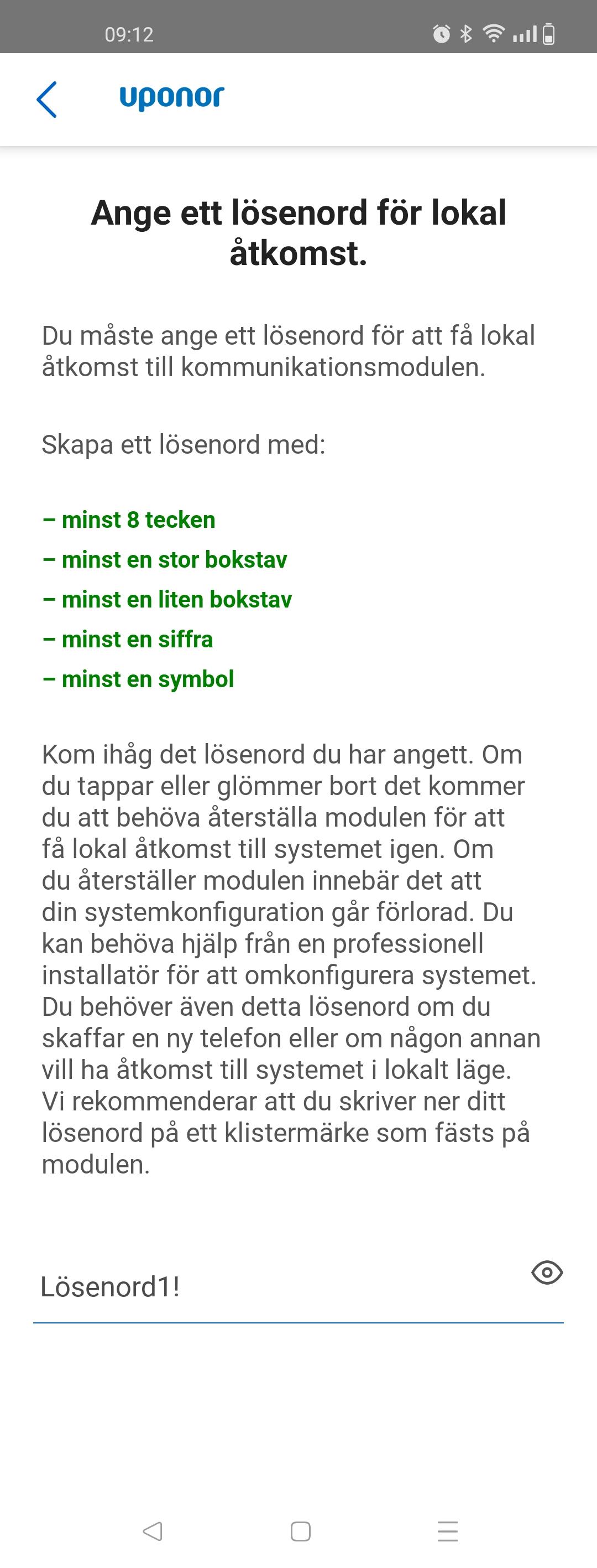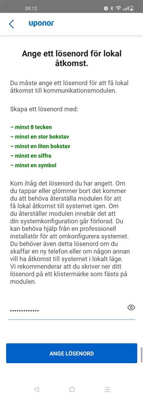 Om ni blir ombedd att ange ett lösenord för lokal åtkomst och alla kriterier är uppfyllda men ni får inte fram knappen "Ange lösenord" för att komma vidare. Kontrollera att lösenordet inte innehåller bokstäverna "Å, Ä, Ö".
