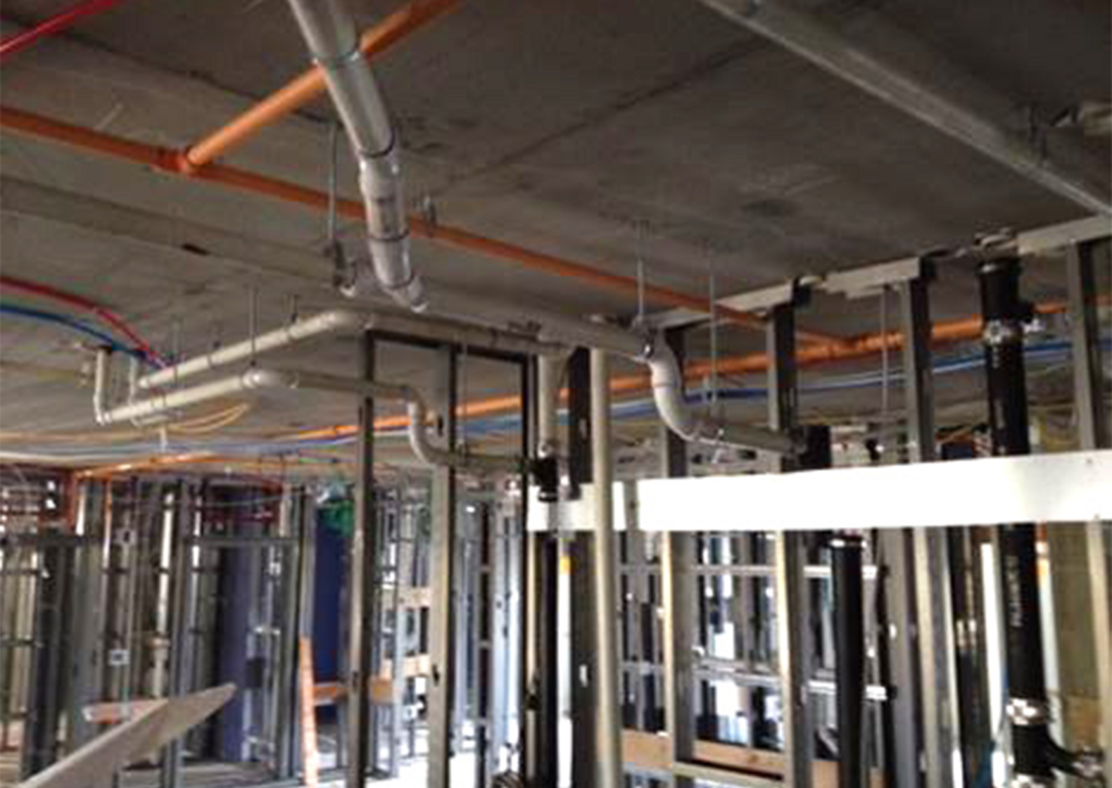 Using PEX for plumbing and mechanical risers, mains and in-unit piping helped minimize conflicts with other trades