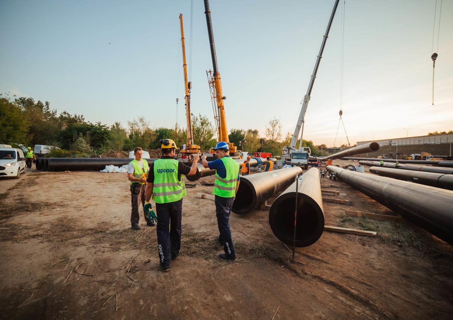 The pace of the work was staggering. Uponor Infra’s crew worked 24 hours a day in order to stop the pollution of the river. Six operational teams were sent to the construction site. A total of around 50 employees were involved in the project, including personnel from the technical, production, prefabrication, logistics, sales and marketing departments. In spite of the fast pace, all work was carried out under proper supervision and in accordance with health and safety rules. After 12 days of controlled discharge into the Vistula River, sewage from seven districts of left-bank Warsaw flowed to the Czajka plant again.